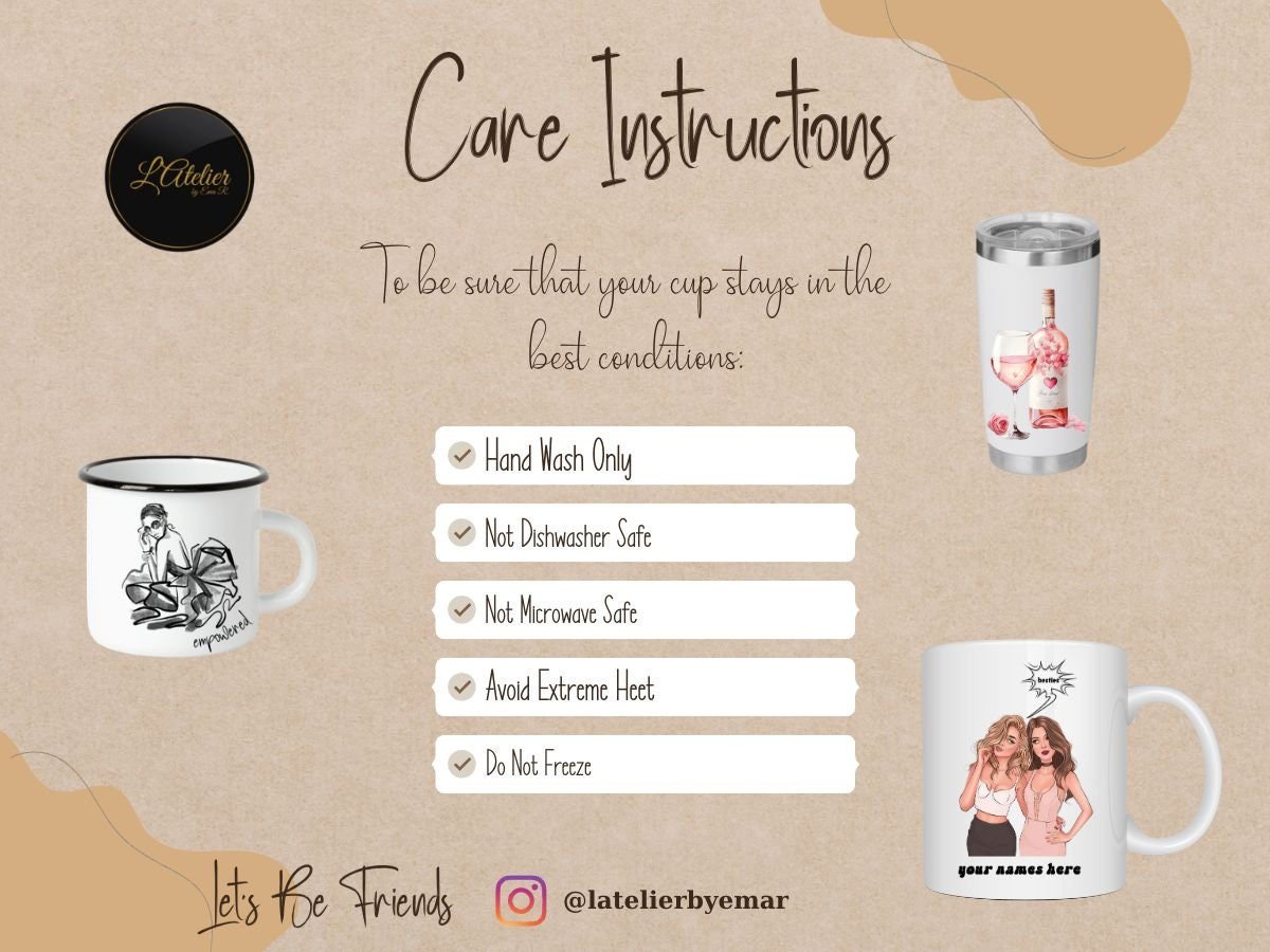 • Care Instructions: Ceramic – Dishwasher & Microwave Safe Tumbler – Hand Wash Recommended