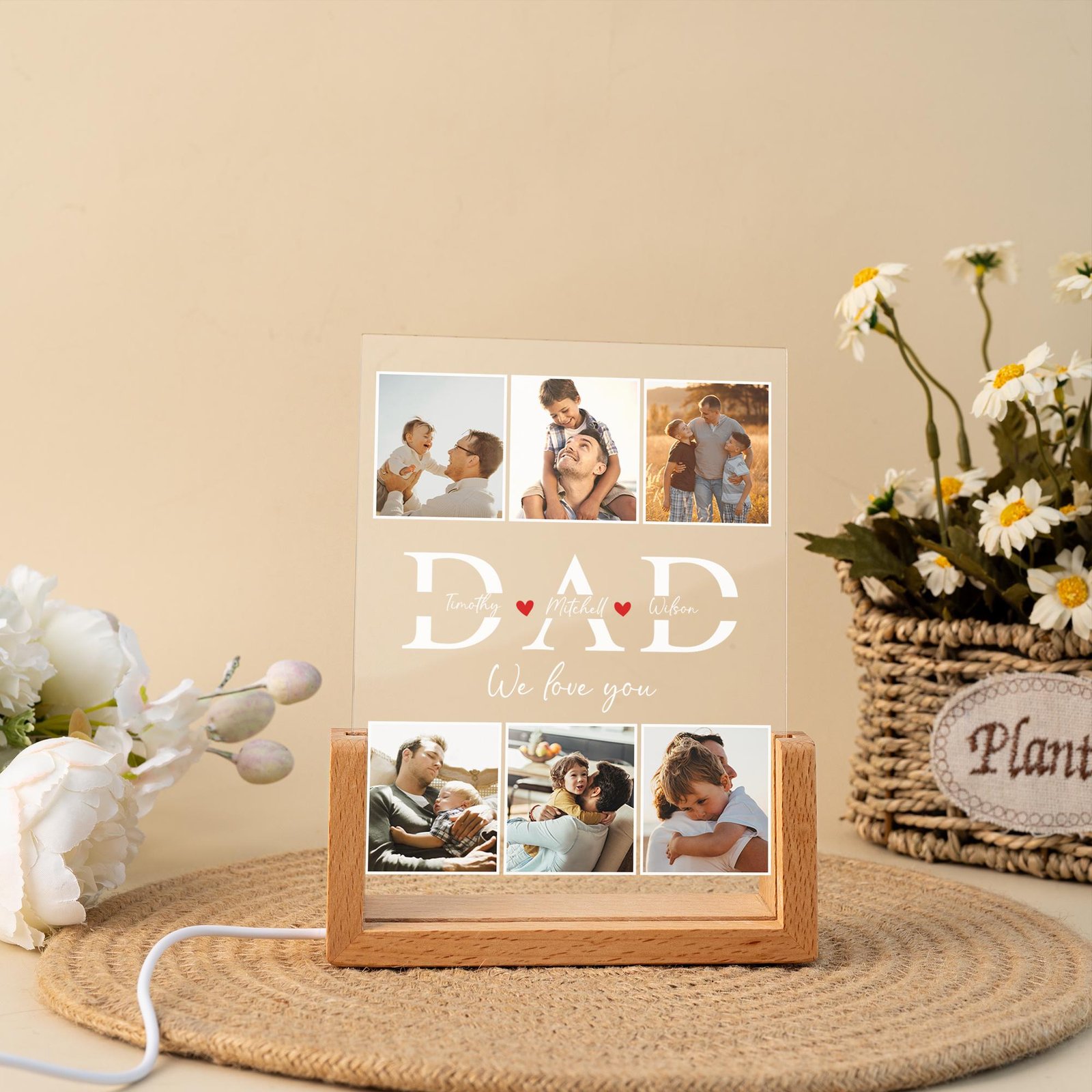 Make the holiday season extra special with a personalized photo night light, a thoughtful gift for your husband or Dad that adds a warm glow to their bedroom. This custom name light is a unique and personal present that celebrates cherished memories, making it an ideal Christmas gift that shows your love and appreciation for the best Dad ever. Illuminate their room with love and light through this heartfelt and sentimental gift.