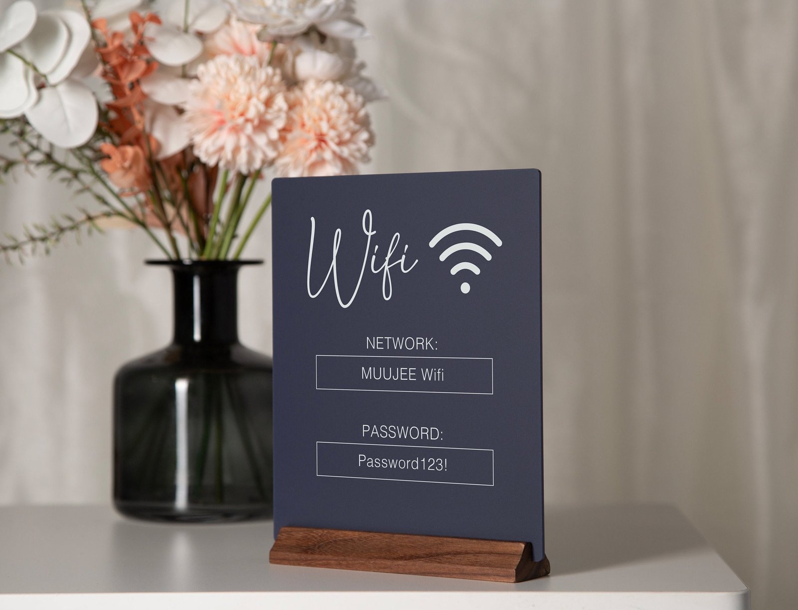 • Customizable design: Personalize the sign with your wifi network name and password, as well as any additional instructions or branding elements.
