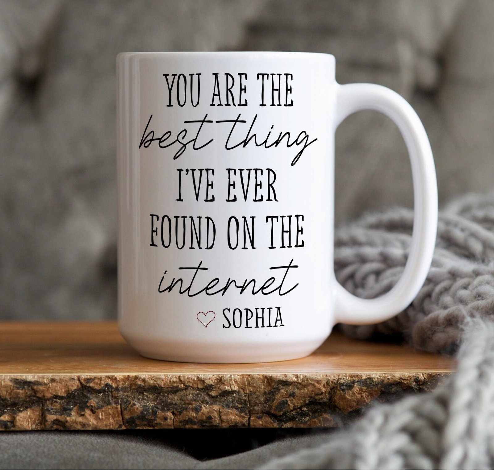 Conclusion: Surprise your loved one with our “You Are the Best Thing I Ever Found On the Internet” Mug, a fun and heartfelt gift that expresses love, appreciation, and a touch of humor. This personalized mug is a perfect way to bring joy and laughter into their everyday routine and remind them of the special connection you share.